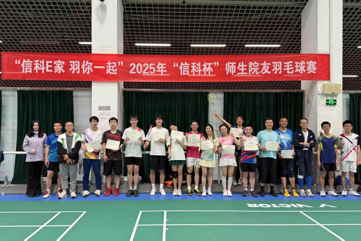 4月29日,2025年“信科杯”师生院友羽毛球赛获奖代表合影