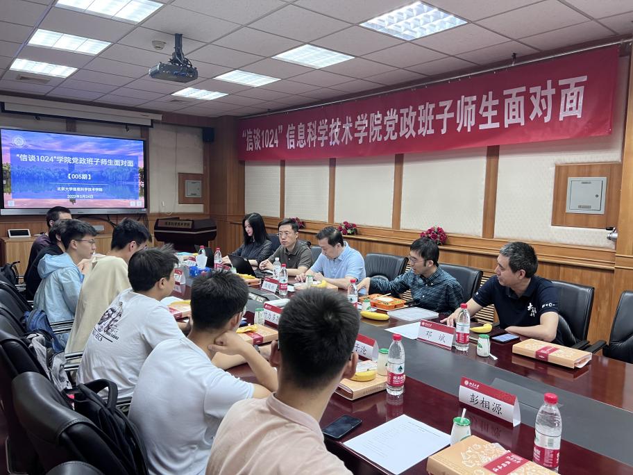 “‘信谈1024’信科党政班子师生面对面”为信息科学技术学院师生交流品牌活动,首期活动于2023年3月10日举办,之后固定在每月10日及24日,其中每月10日为个人单独面谈,每月24日为多人团体座谈。“1024”是2的10次方,是二进制计数的基本计量单位之一,为信息学科师生所熟悉。该活动旨在围绕学院人才培养这一中心工作,通过搭建学院党政班子和全院师生的日常面对面交流平台,在师生中开展调查研究,解决长期存在的问题或困惑,并听取和收集师生对于学院发展的意见及建议,凝聚共识,勠力同心,不断推进学院又好又快发展。